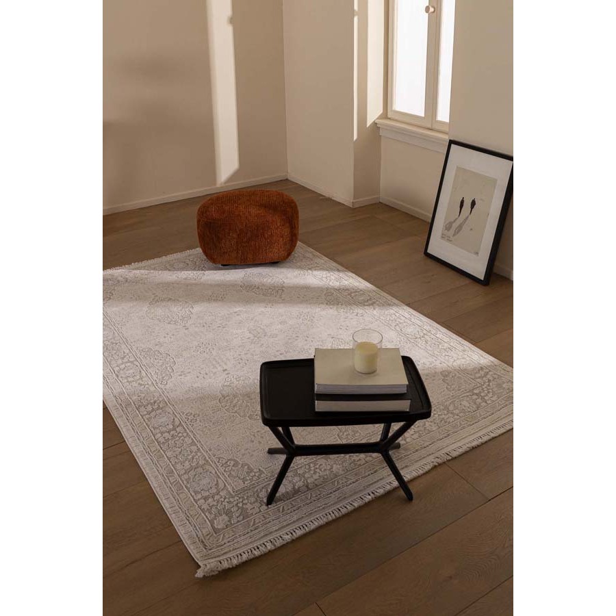 Μοντέρνο χαλί σαλονιού Allure σε μπεζ/γκρι απόχρωση με επιρροές από κλασικά και μοντέρνα σχέδια, και ανάγλυφη επιφάνεια.