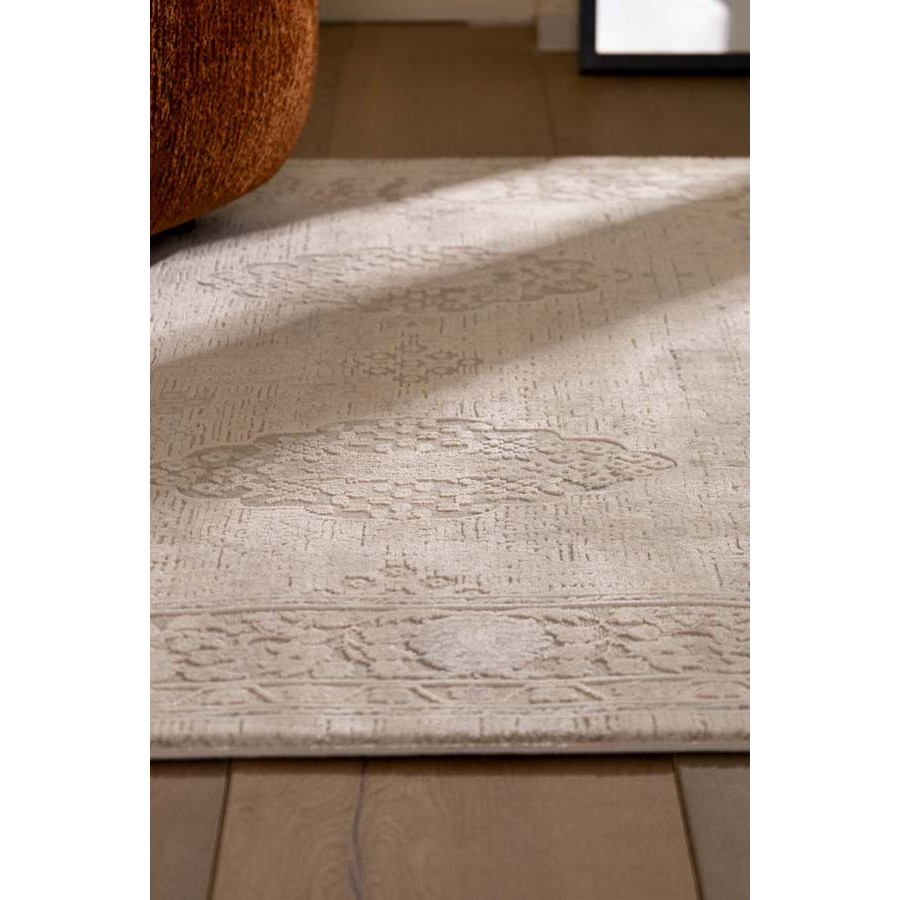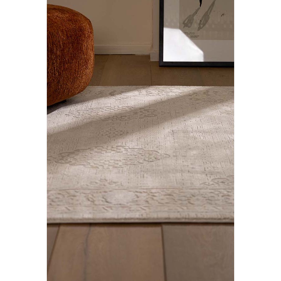Μοντέρνο Χαλί Allure σε μπεζ/γκρι απόχρωση με επιρροές από κλασικά και μοντέρνα σχέδια, και ανάγλυφη επιφάνεια.