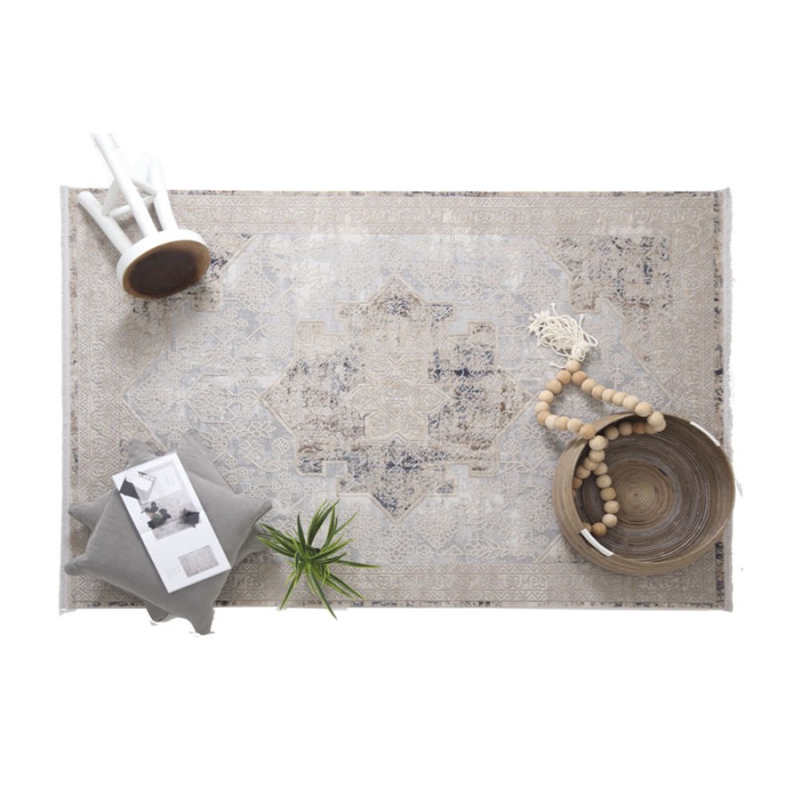 Μοντέρνο χαλί σαλονιού Allure σε γκρι και μπεζ απόχρωση με επιρροές από κλασικά και μοντέρνα σχέδια.