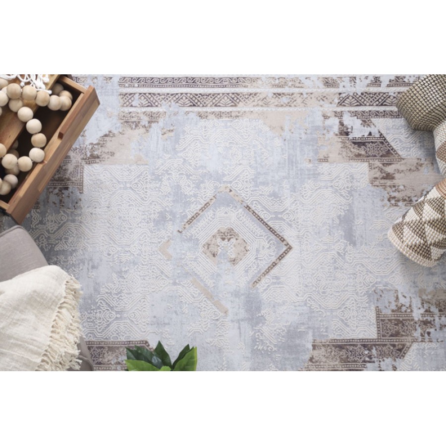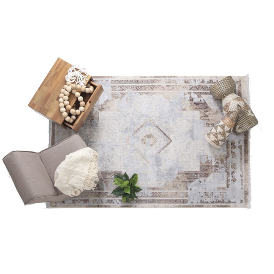 Μοντέρνο Χαλί Allure σε καφέ και γκρι απόχρωση με επιρροές από κλασικά και μοντέρνα σχέδια, και ανάγλυφη επιφάνεια.