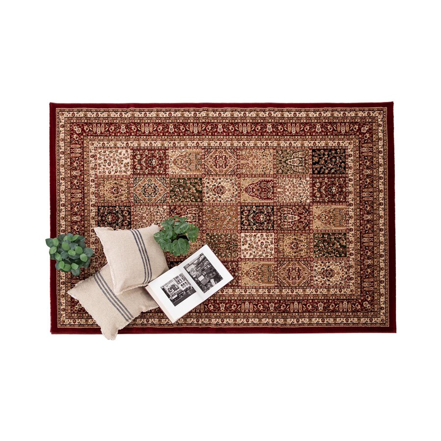 Κλασικό χαλί Teheran της εταιρίας Royal Carpet σε ποικιλία διαστάσεων, με κόκκινες και κρεμ αποχρώσεις. Eίναι ιδιαίτερα πυκνό με 400.000 κόμπους ανά τετραγωνικό μέτρο.