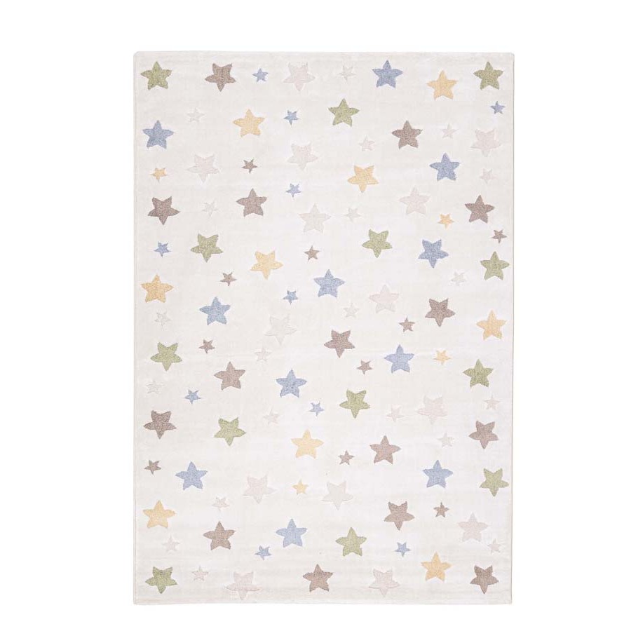 Χαλί σε εκρού χρώμα, με πολύχρωμη παστέλ ανάγλυφη παράσταση με αστέρια. Όλα τα χαλιά είναι υποαλλεργικά και κατάλληλα για πλύσιμο.