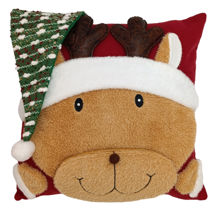 Χριστουγεννιάτικη μαξιλαροθήκη κεντημένη με το πρόσωπο του τάρανδου με πλεκτό σκούφο. Διαθέτουν φερμουάρ για να αφαιρείται η γέμιση. Στολίστε οποιονδήποτε χώρο του σπιτιού και δώστε μία μοναδική Χριστουγεννιάτικη ατμόσφαιρα.