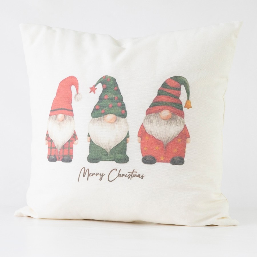 Χριστουγεννιάτικη διακοσμητική μαξιλαροθήκη, σε εκρού χρώμα, με τυπωτό σχέδιο δύο κόκκινους και έναν πράσινο νάνο. Διαθέτει φερμουάρ για να αφαιρείται η γέμιση. Ανανεώστε τα μαξιλάρια σας και καλωσορίστε τις γιορτές με χαρούμενες χριστουγεννιάτικες μαξιλαροθήκες που δημιουργούν μια μαγική ατμόσφαιρα.