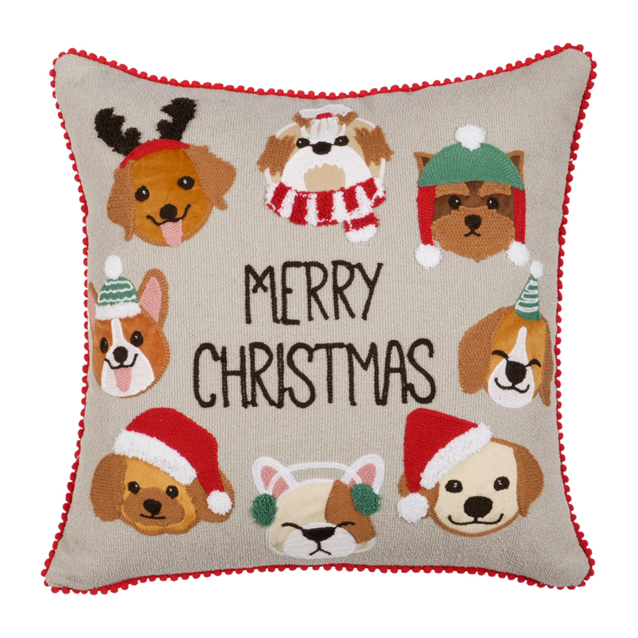 Ζακάρ χριστουγεννιάτικη διακοσμητική μαξιλαροθήκη, με τυπωτό σχέδιο σκυλάκια με σκούφους.