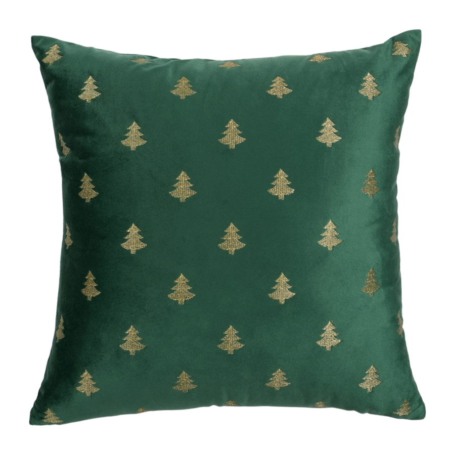 Βελουτέ χριστουγεννιάτικη διακοσμητική μαξιλαροθήκη, σε πράσινο χρώμα και με κεντημένα χρυσά ελατάκια. Διαθέτει φερμουάρ για να αφαιρείται η γέμιση. Στολίστε οποιονδήποτε χώρο του σπιτιού και δώστε μία μοναδική Χριστουγεννιάτικη ατμόσφαιρα.