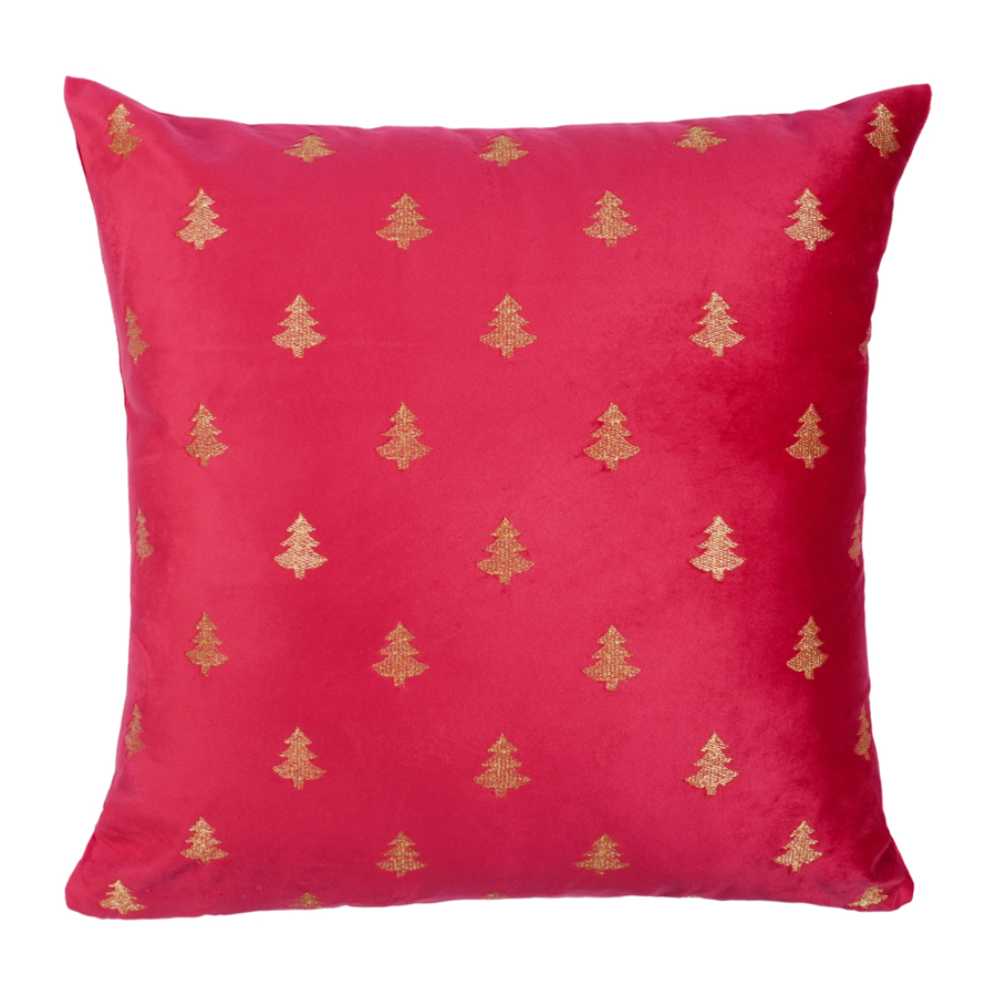 Βελουτέ χριστουγεννιάτικη διακοσμητική μαξιλαροθήκη, σε κόκκινο χρώμα και με κεντημένα χρυσά ελατάκια. Διαθέτει φερμουάρ για να αφαιρείται η γέμιση. Στολίστε οποιονδήποτε χώρο του σπιτιού και δώστε μία μοναδική Χριστουγεννιάτικη ατμόσφαιρα.