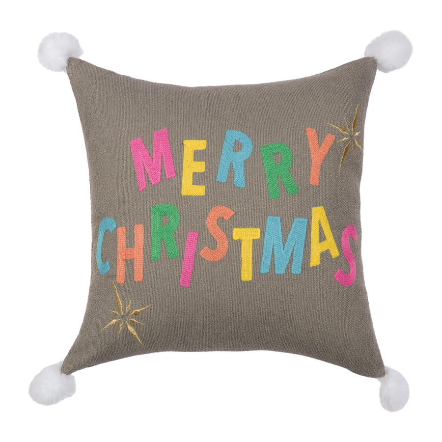 Ζακάρ χριστουγεννιάτικη διακοσμητική μαξιλαροθήκη, σε γκρι φόντο και με απλικέ πολύχρωμο σχέδιο την λέξη Merry Christmas. Διαθέτει φερμουάρ για να αφαιρείται η γέμιση. Στολίστε οποιονδήποτε χώρο του σπιτιού και δώστε μία μοναδική Χριστουγεννιάτικη ατμόσφαιρα.