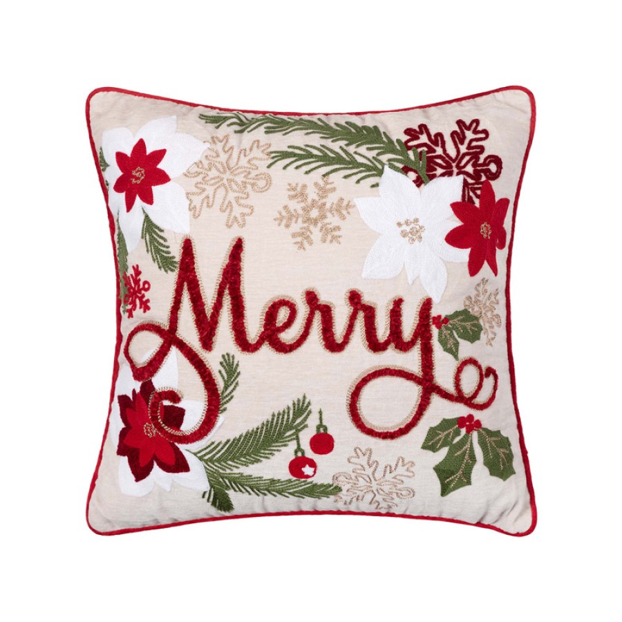Χριστουγεννιάτικη Μαξιλαροθήκη (45x45) Με Ανάγλυφο Σχέδιο Newhome 52216 Merry