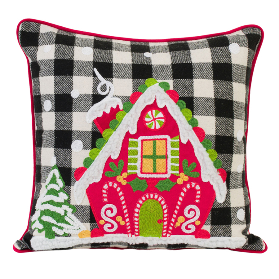 Χριστουγεννιάτικη Μαξιλαροθήκη Φιγούρας (45x45) Καρώ Απλικέ Newhome 90157 Σπιτάκι Ζαχαρωτό