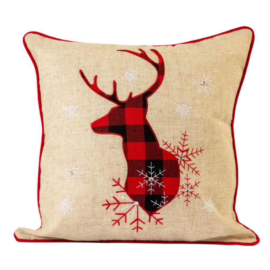 Χριστουγεννιάτικη Μαξιλαροθήκη Φιγούρας (45x45) Λινή Απλικέ Newhome 0612