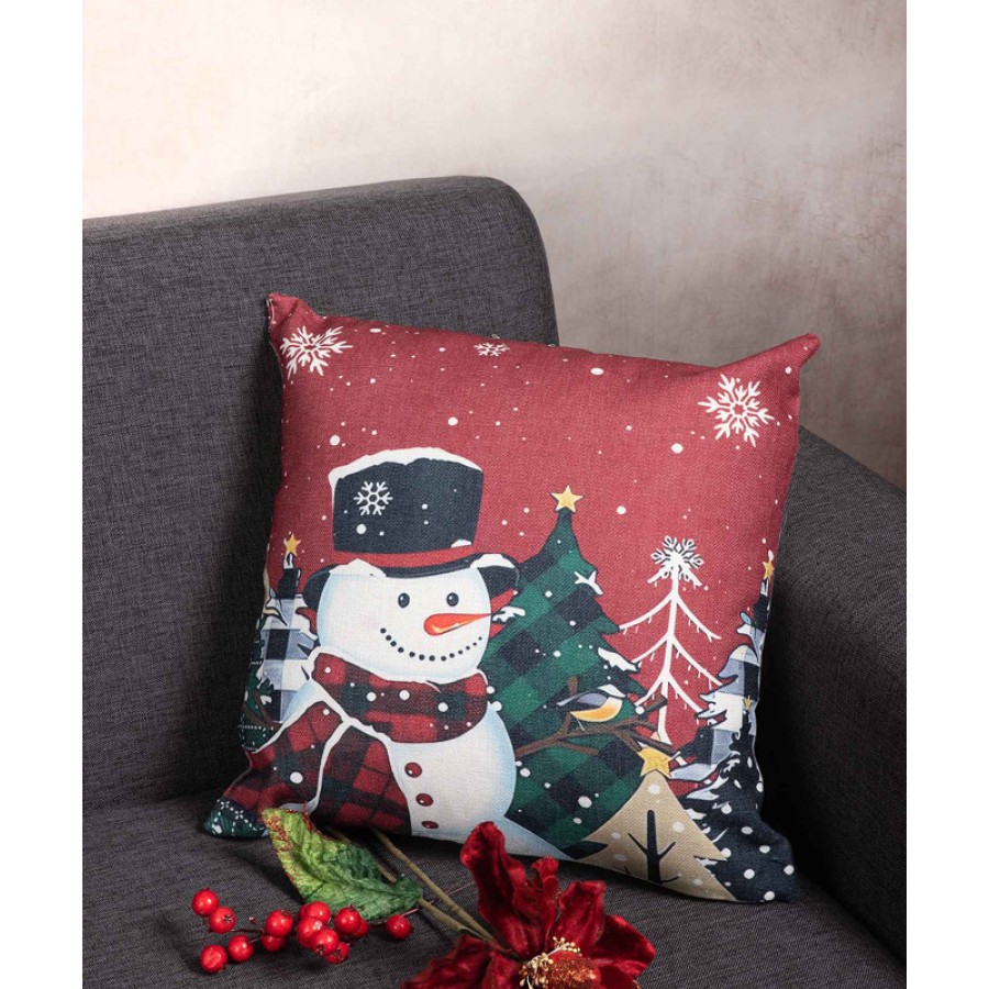 Χριστουγεννιάτικη Μαξιλαροθήκη Φιγούρας (45x45) Newhome KS2025-6 Χιονάνθρωπος με Δέντρο