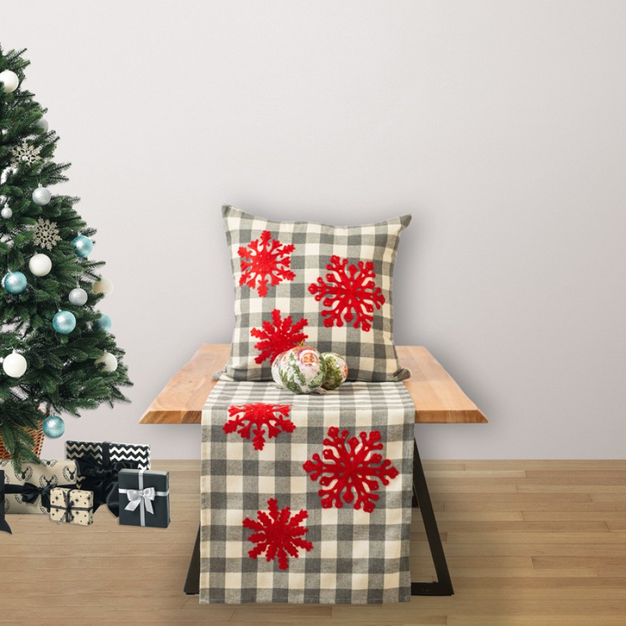 Χριστουγεννιάτικη Τραβέρσα (40x170) Καρώ Aπλικέ Newhome 1134 Χιονονιφάδες