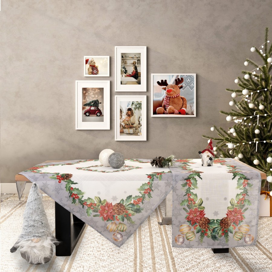 Χριστουγεννιάτικο Καρέ (85x85) Τυπωτό Newhome 91521 Κουκουνάρια και Γκι Με Στολίδια Γκρι