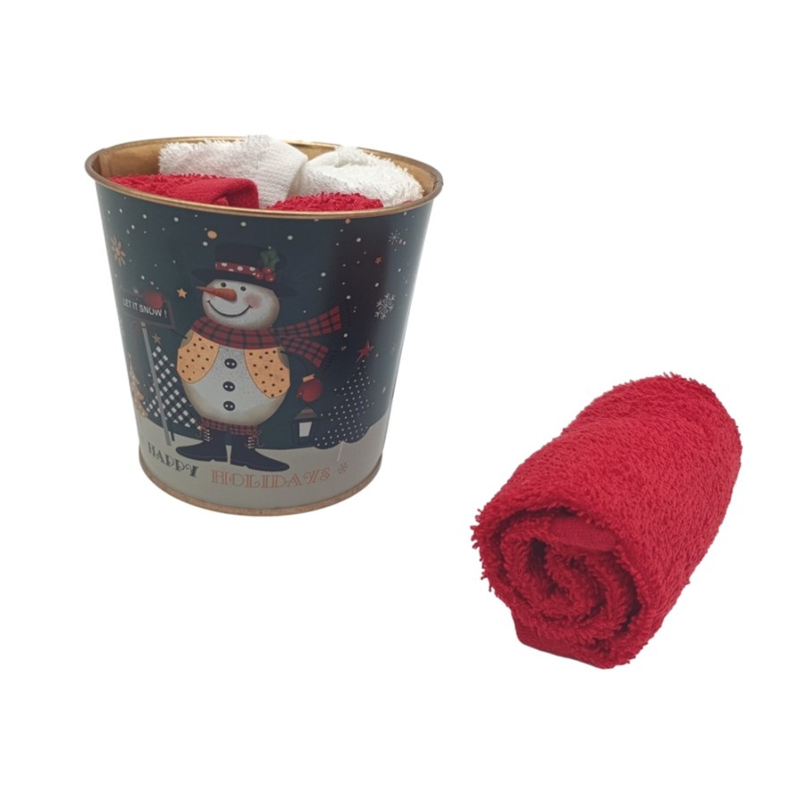 Χριστουγεννιάτικο Σετ Δώρου 5 Λαβέτες (30x30) σε Μεταλλικό Καλάθι Newhome 23995-3