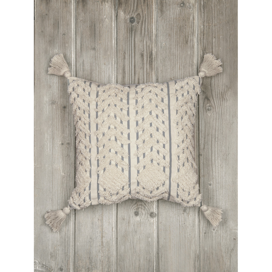Διακοσμητική μαξιλαροθήκη με κάλυμμα από 100% βαμβάκι Tufted, με ανάγλυφο σχέδιο σε ουδέτερους τόνους. Αφράτο και απαλό, έχει φυσικό βαμβακερό ύφασμα που είναι φιλικό προς το δέρμα, υποαλλεργικό και δεν ηλεκτρίζεται. Είναι ανθεκτικό στον χρόνο και διατηρεί το χρώμα και το σχήμα του χωρίς να απαιτεί ιδιαίτερη φροντίδα. Ιδανικό για να διακοσμήσει το σαλόνι ή το υπνοδωμάτιό σας. όλους τους μήνες του έτους.