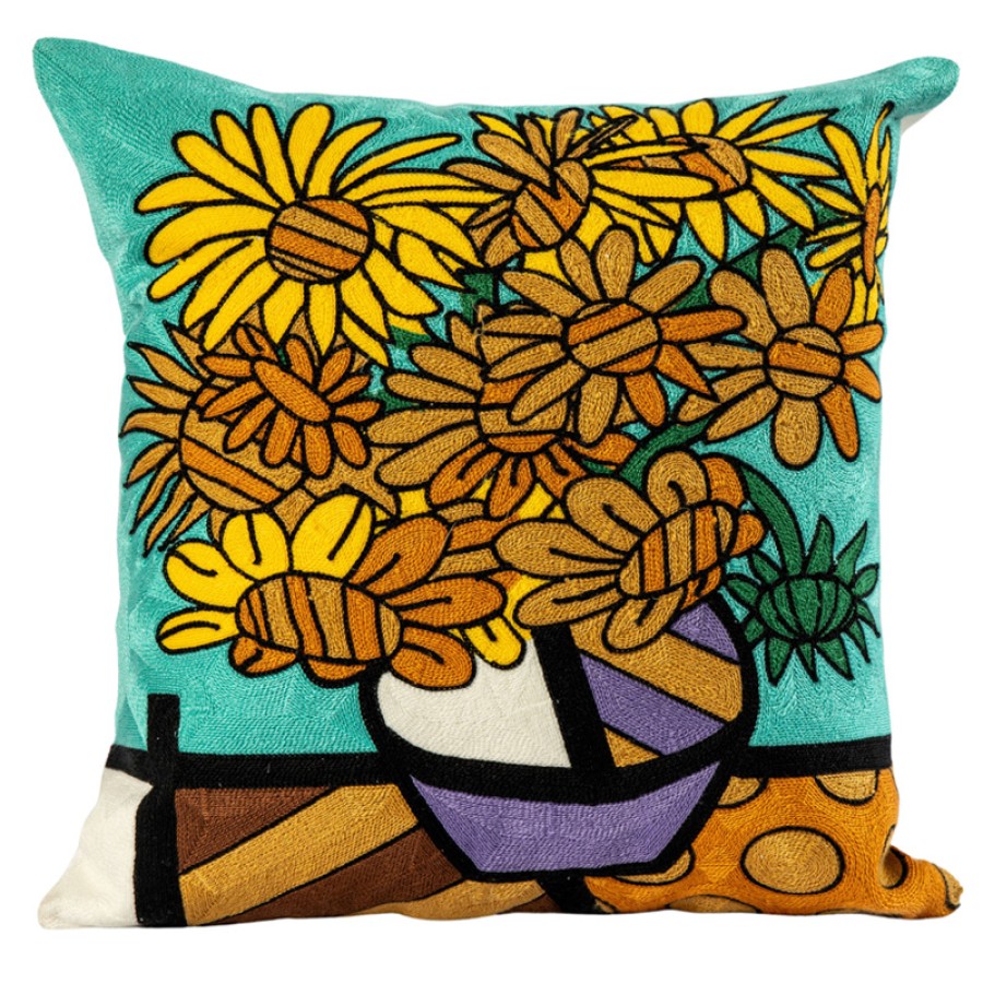 Ολοκέντητη Διακοσμητική Θήκη για μαξιλάρι φιγούρας, με αλυσιδοβελονιά.