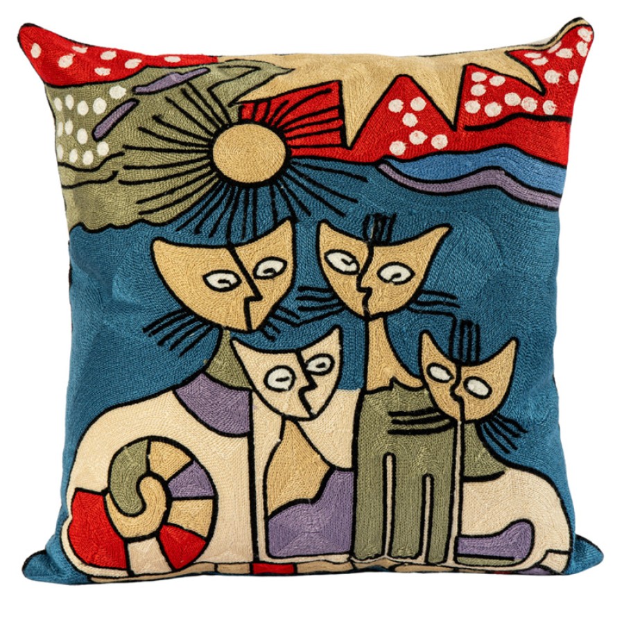 Ολοκέντητη Διακοσμητική Θήκη για μαξιλάρι φιγούρας, με αλυσιδοβελονιά.