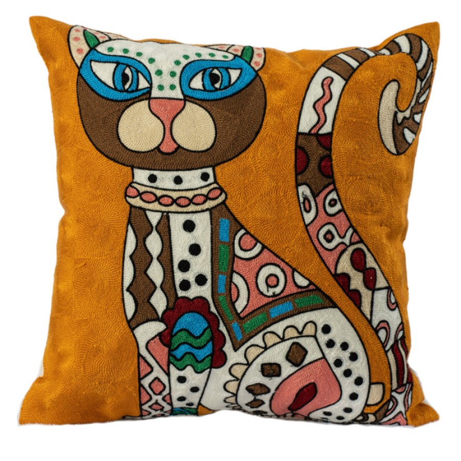 Ολοκέντητη Διακοσμητική Θήκη για μαξιλάρι φιγούρας, με αλυσιδοβελονιά.