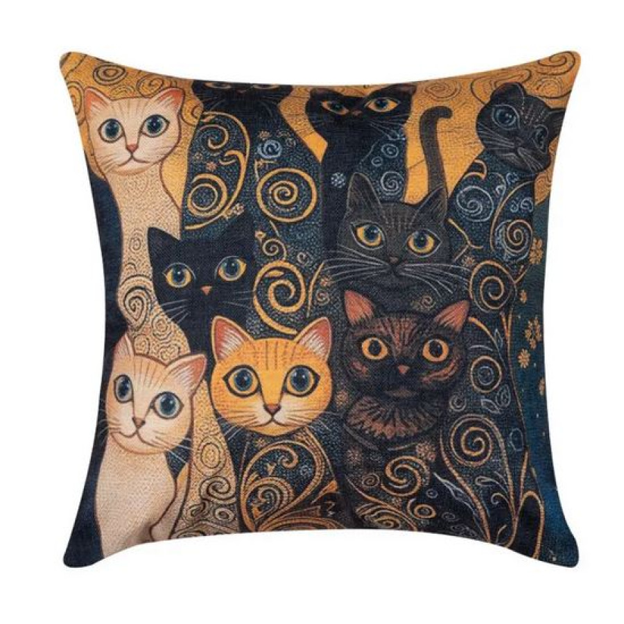 Διακοσμητική Μαξιλαροθήκη Φιγούρας (45x45) Newhome KS611 Μαύρα Γατάκια