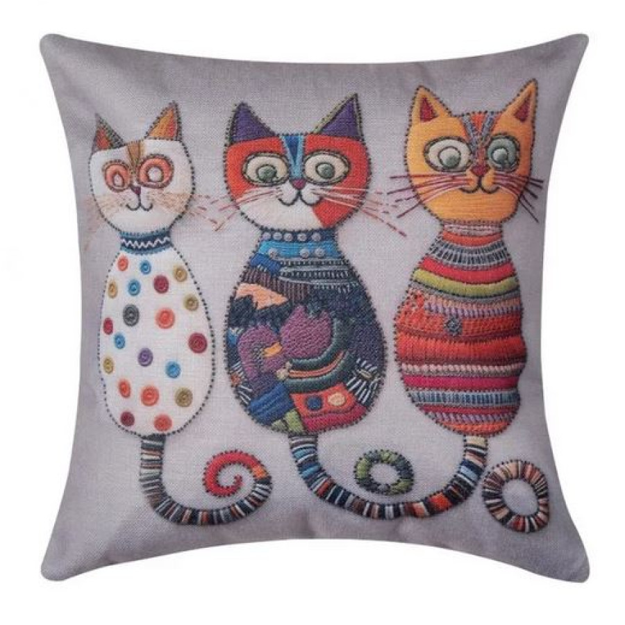 Διακοσμητική Μαξιλαροθήκη Φιγούρας (45x45) Newhome KS616 Γατάκια Πολύχρωμα