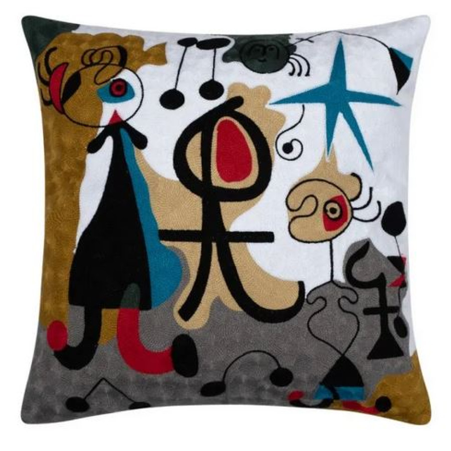 Αυτή η διακοσμητική μαξιλαροθήκη 45x45 cm είναι ολοκέντητη σε βαμβακερό πανί υψηλής ποιότητας, προσφέροντας μια αίσθηση πολυτέλειας και κομψότητας. Με μοντέρνα σχέδια και ζωηρά χρώματα, εμπνευσμένο από τον Joan Miro, αποτελεί ιδανική επιλογή για να αναβαθμίσετε τη διακόσμηση του χώρου σας, προσθέτοντας μια διακριτική αλλά εντυπωσιακή πινελιά.
