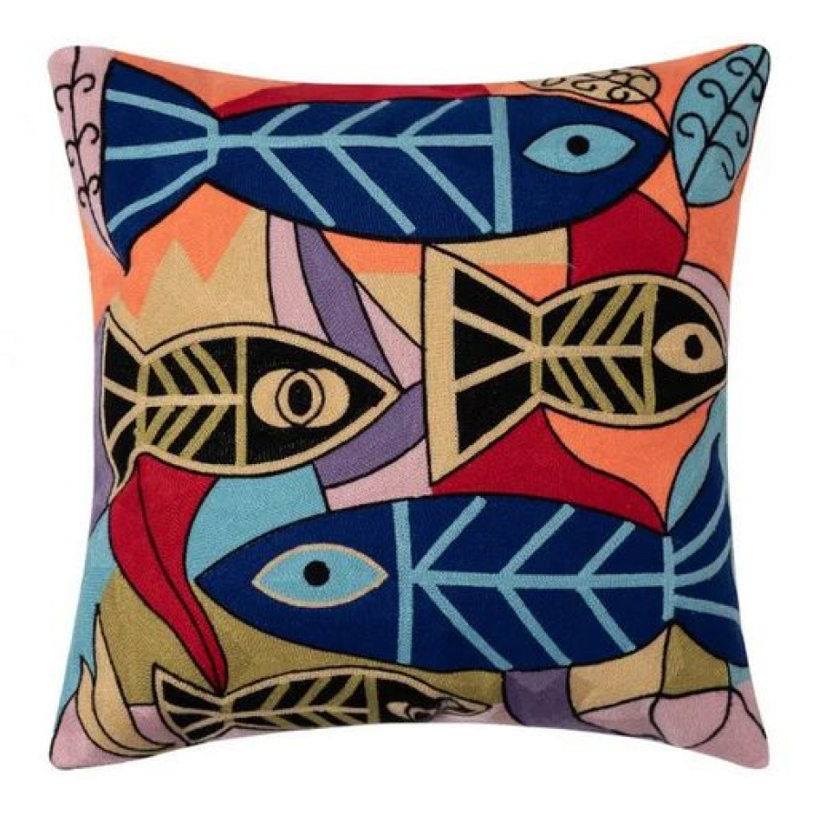 Διακοσμητική Θήκη για Μαξιλάρια Καναπέ (45x45) Ολοκέντητο Πολύγαζο Newhome 138 Ψάρια