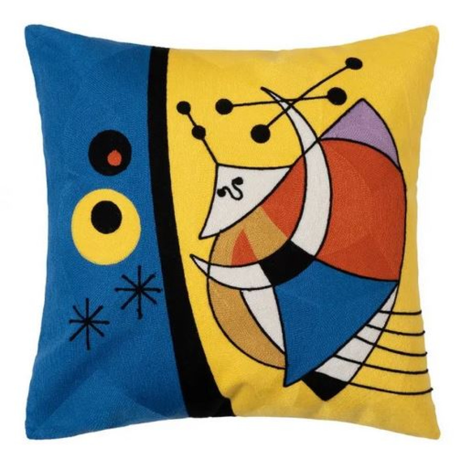 Αυτή η διακοσμητική μαξιλαροθήκη 45x45 cm είναι ολοκέντητη σε βαμβακερό πανί υψηλής ποιότητας, προσφέροντας μια αίσθηση πολυτέλειας και κομψότητας. Με μοντέρνα σχέδια και ζωηρά χρώματα, εμπνευσμένο από τον Joan Miro, αποτελεί ιδανική επιλογή για να αναβαθμίσετε τη διακόσμηση του χώρου σας, προσθέτοντας μια διακριτική αλλά εντυπωσιακή πινελιά.