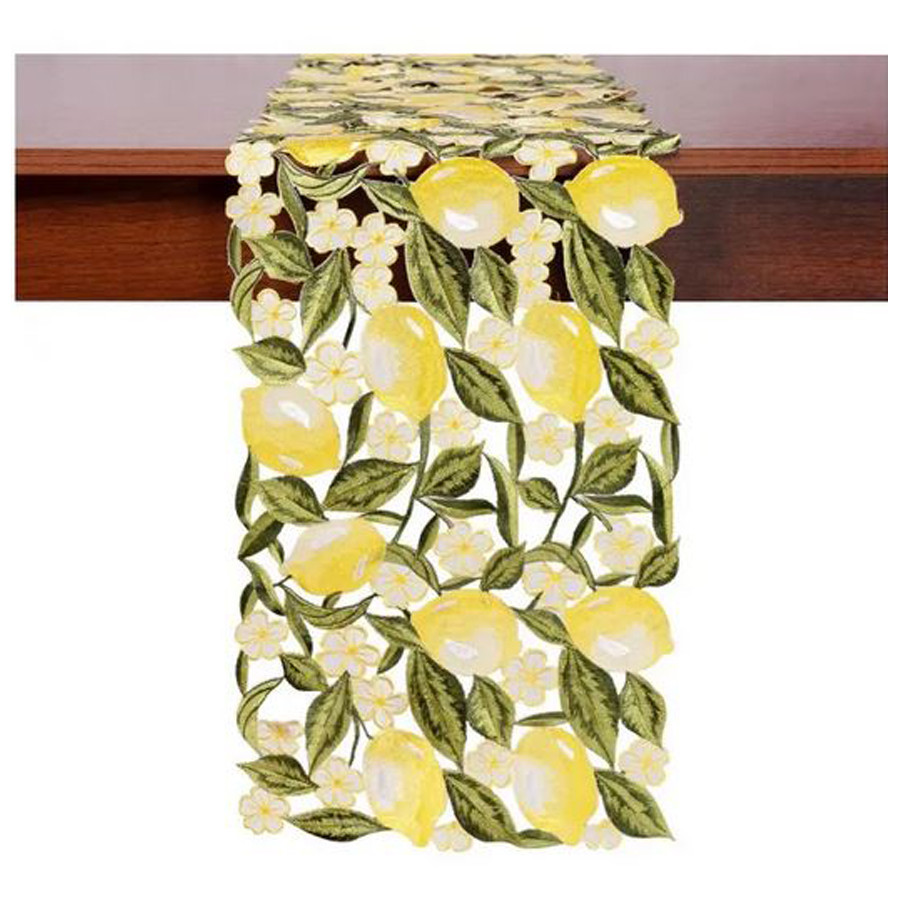 Διακοσμητική Τραβέρσα (30x160) Κοφτή Κεντητή Newhome 2355 με Λεμόνια