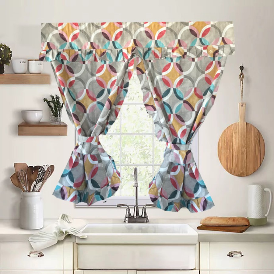 Έτοιμη κουρτίνα Κρουαζέ για Κουζίνα (130x120) NEWHOME Ritmo Rojo