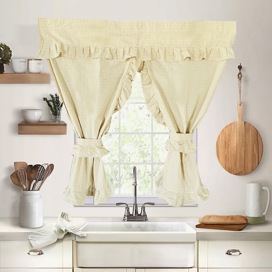 Έτοιμη κουρτίνα Κρουαζέ για Κουζίνα (130x120) NEWHOME Rubi beige καρώ μπεζ