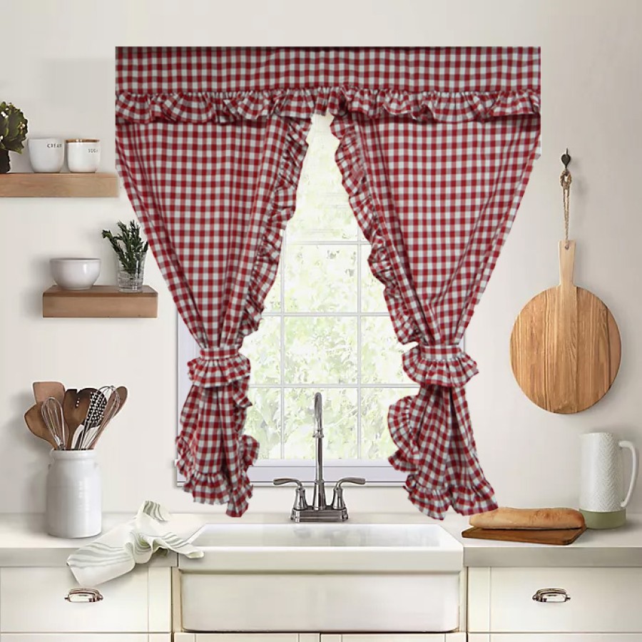 Έτοιμη κουρτίνα Κρουαζέ για Κουζίνα (130x120) NEWHOME Zafiro rojo καρώ κόκκινο