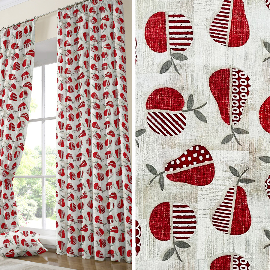 Έτοιμη κουρτίνα με σχέδιο μήλα.