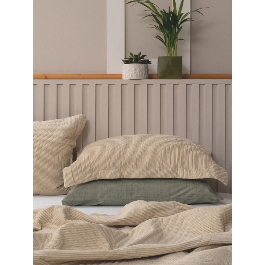 Βελουτέ κοτλέ κουβερλί 4 εποχών , διπλής όψης , με καπιτονέ σχέδιο με ρόμβους.