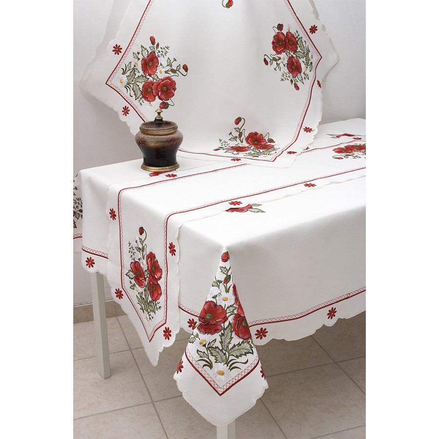 Τραπεζομάντηλο Ροτόντα (Διάμετρος 170εκ) Κεντημένη με Παπαρούνες Newhome 42507 κόκκινο