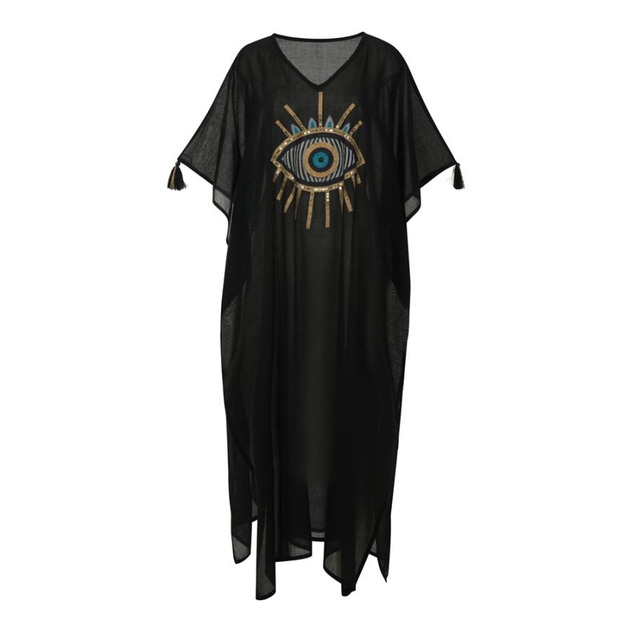 Ένα εντυπωσιακό καφτάνι με πλούσιο κέντημα σε μαύρη απόχρωση, που χαρίζει θηλυκότητα σε κάθε εμφάνιση.