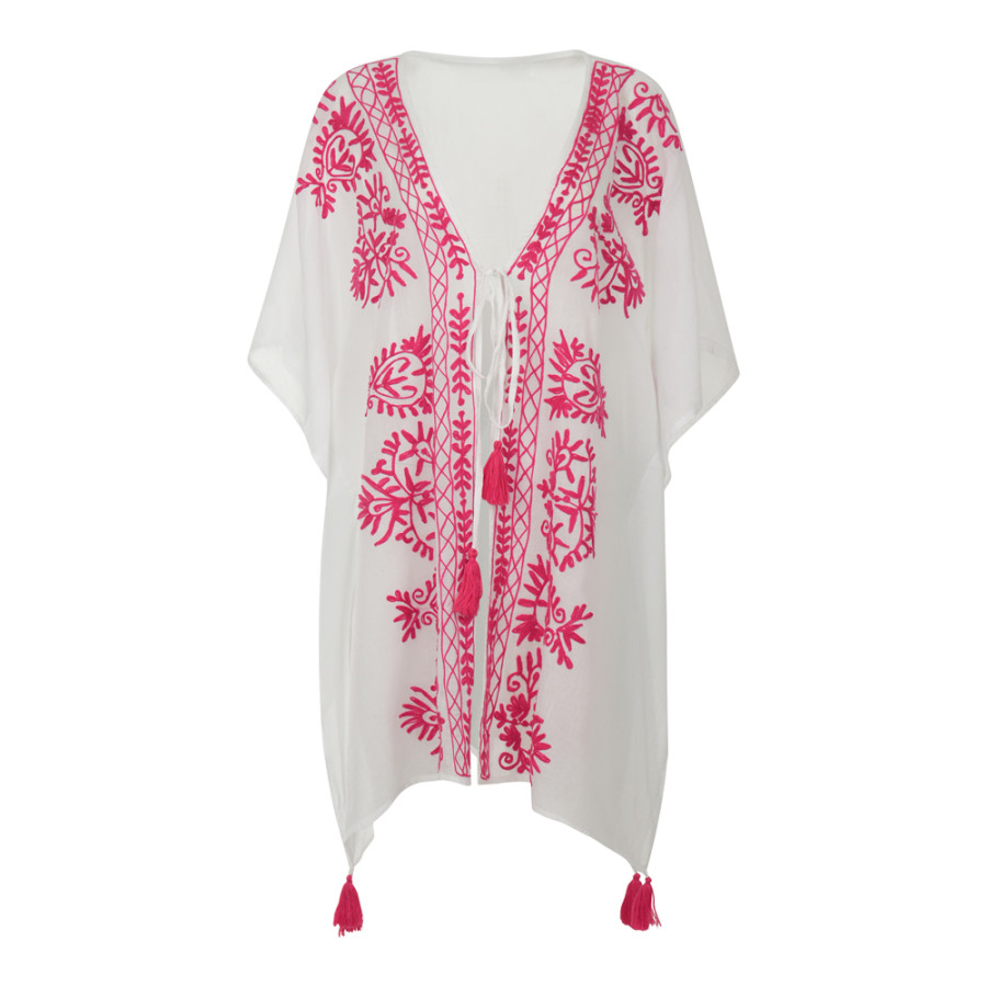 Καφτάνια Παραλίας (One Size) Βαμβακερά Κεντημένα Newhome D-8081 Φούξια