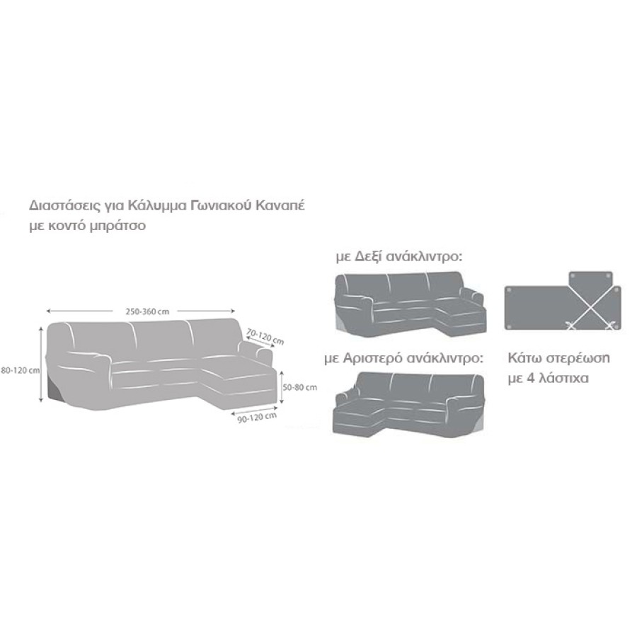 Για Γωνιακό Καναπέ με μήκος πλάτης από 2,50μ έως 3,60μ, με δεξί ανάκλιντρο (γωνία)
