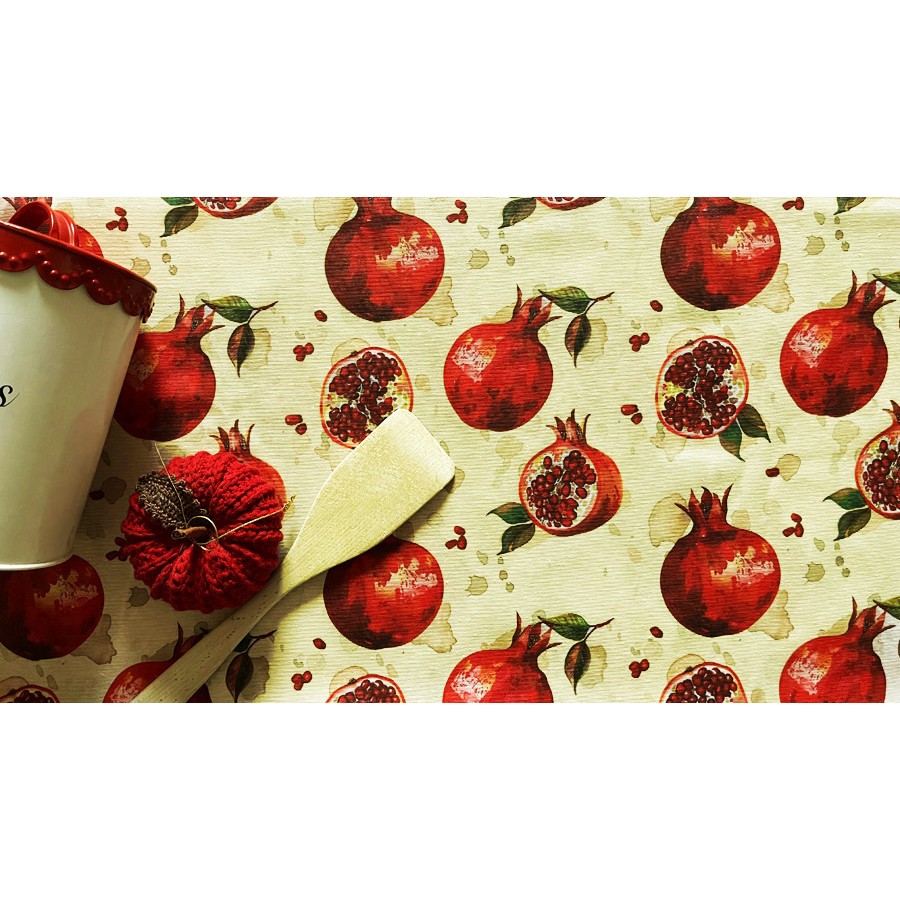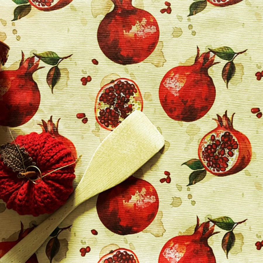 Καρέ με τύπωμα ρόδια σε μπεζ φόντο.