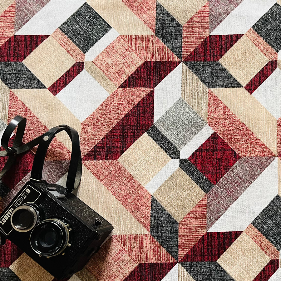 Γεωμετρικό σχέδιο σε μπορντό και γκρι αποχρώσεις με vintage διάθεση.