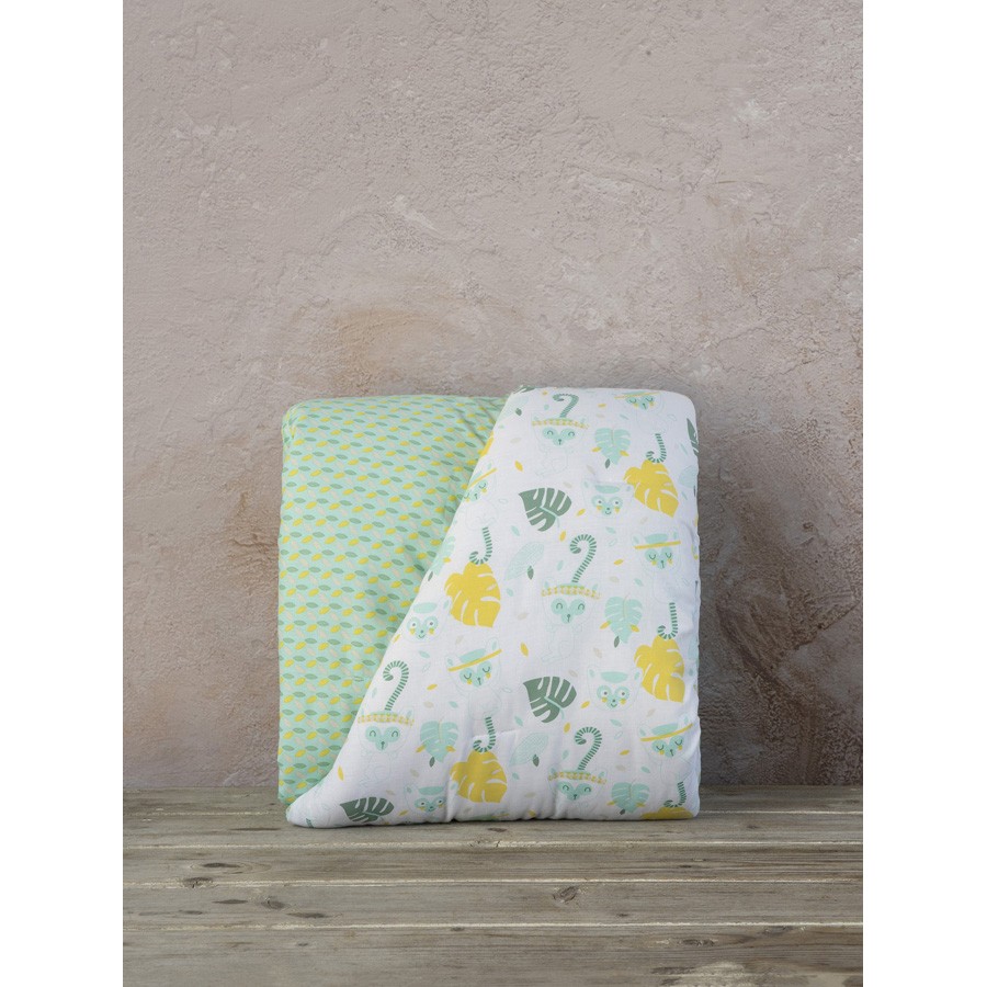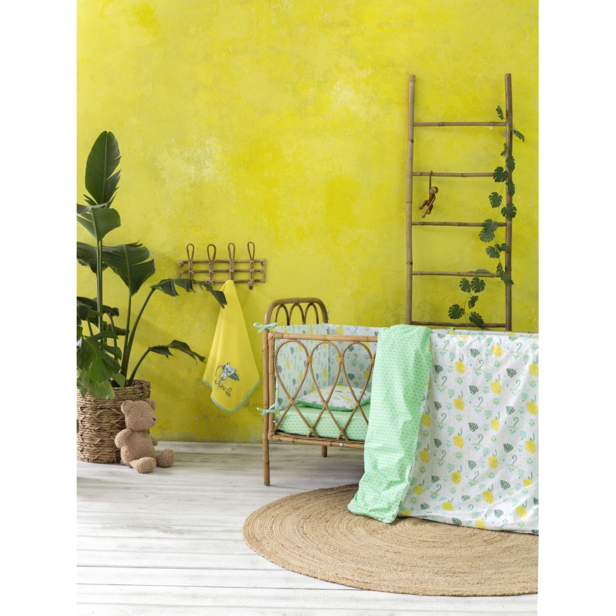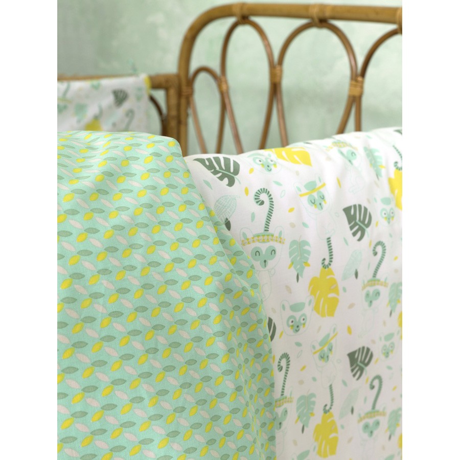 Το βαμβακερό κουβερλί κούνιας Akunga θα φέρει τη μαγεία της ζούγκλας στο βρεφικό δωμάτιο με ένα υπέροχο τυπωτό σχέδιο διακοσμημένο με λεμούριους και φυλλωσιές δέντρων. Έχει γλυκιές αποχρώσεις του πράσινου και του κίτρινου που δημιουργούν αίσθηση χαράς και χαλάρωσης στο βρεφικό δωμάτιο. Το μωράκι σας θα σας χαρίζει χαμόγελα καθώς ανακαλύπτει τα χαριτωμένα ζωάκια στο σχέδιό του.