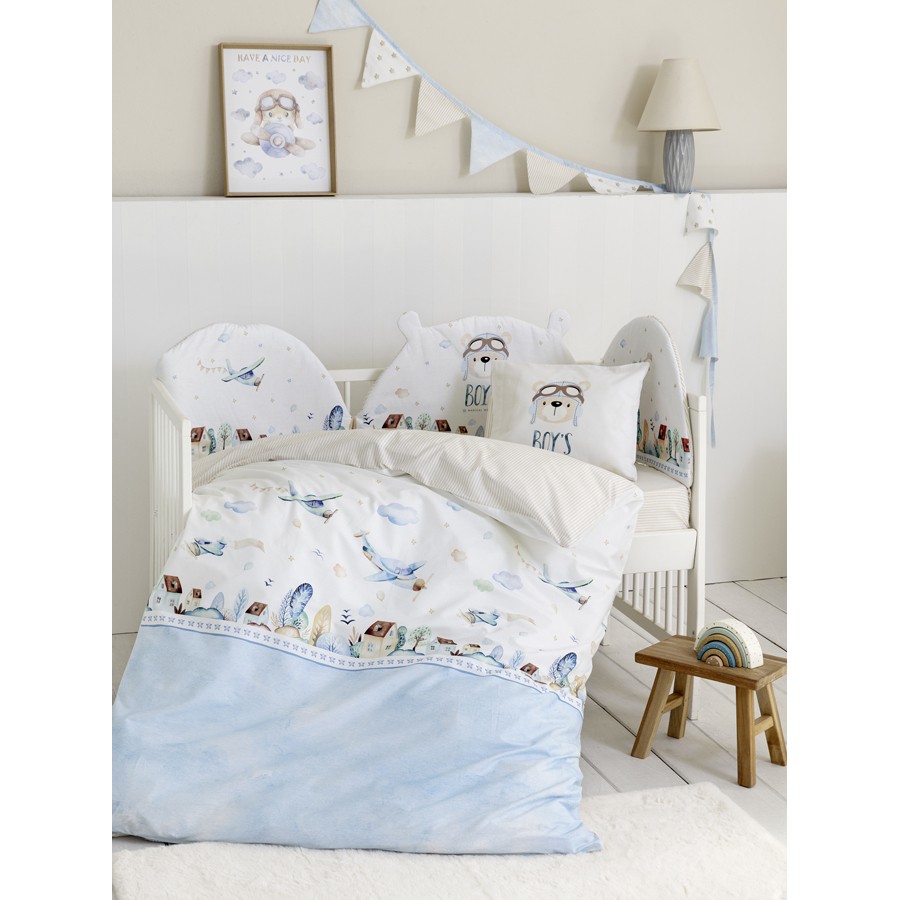 Κουβερλί βρεφικό κούνιας, βαμβακερό με τυπωτό σχέδιο αεροπλανάκια.