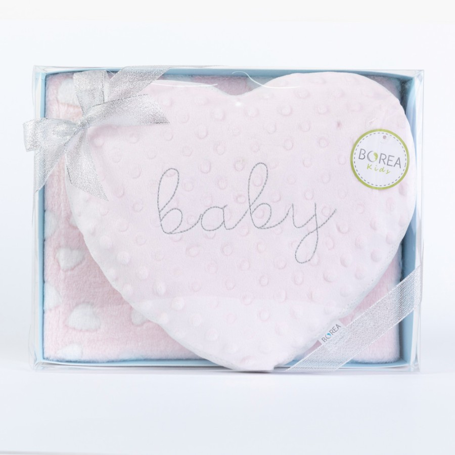 Κουβέρτα Αγκαλιάς-Λίκνου (75x100) Σετ με Μαξιλάρι σε Κουτί Δώρου Borea Καρδούλα
