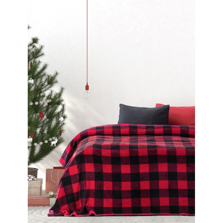 Κουβέρτα υπέρδιπλη fleece με καρό σχέδιο σε μπορντώ-μαύρο χρώμα. Είναι κατασκευασμένη από 100% polyester με απαλή υφή. Είναι ιδανική για τα χριστούγεννα.