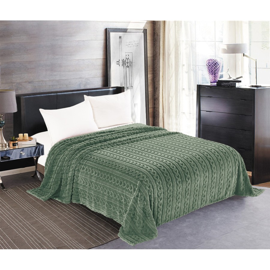 Κουβέρτα Fleece Υπέρδιπλη (220x240) με Ανάγλυφη Πλέξη, Newhome Braid Πράσινο