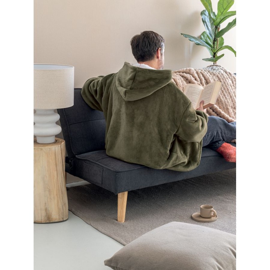 Κουβέρτα με μανίκια και κουκούλα (90x100) Μονόχρωμη Fleece-Sherpa Palamaiki Huhu/2 Khaki