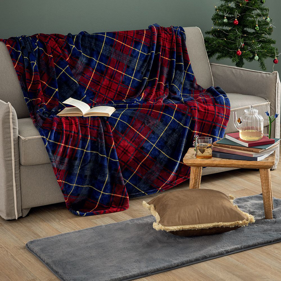 Κουβέρτα μονή, πολυεστερική, flannel fleece σε καρό σχέδιο.