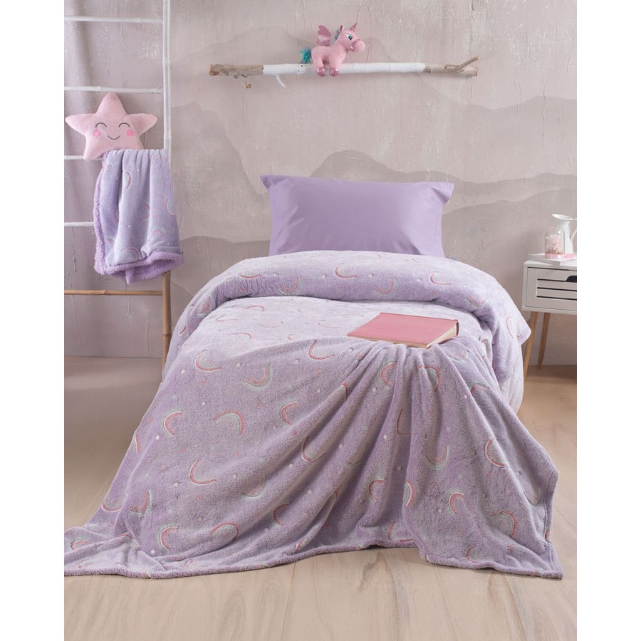 Κουβέρτα Μονή (160x220) Flannel Fleece Rythmos Nelie με ουράνια τόξα