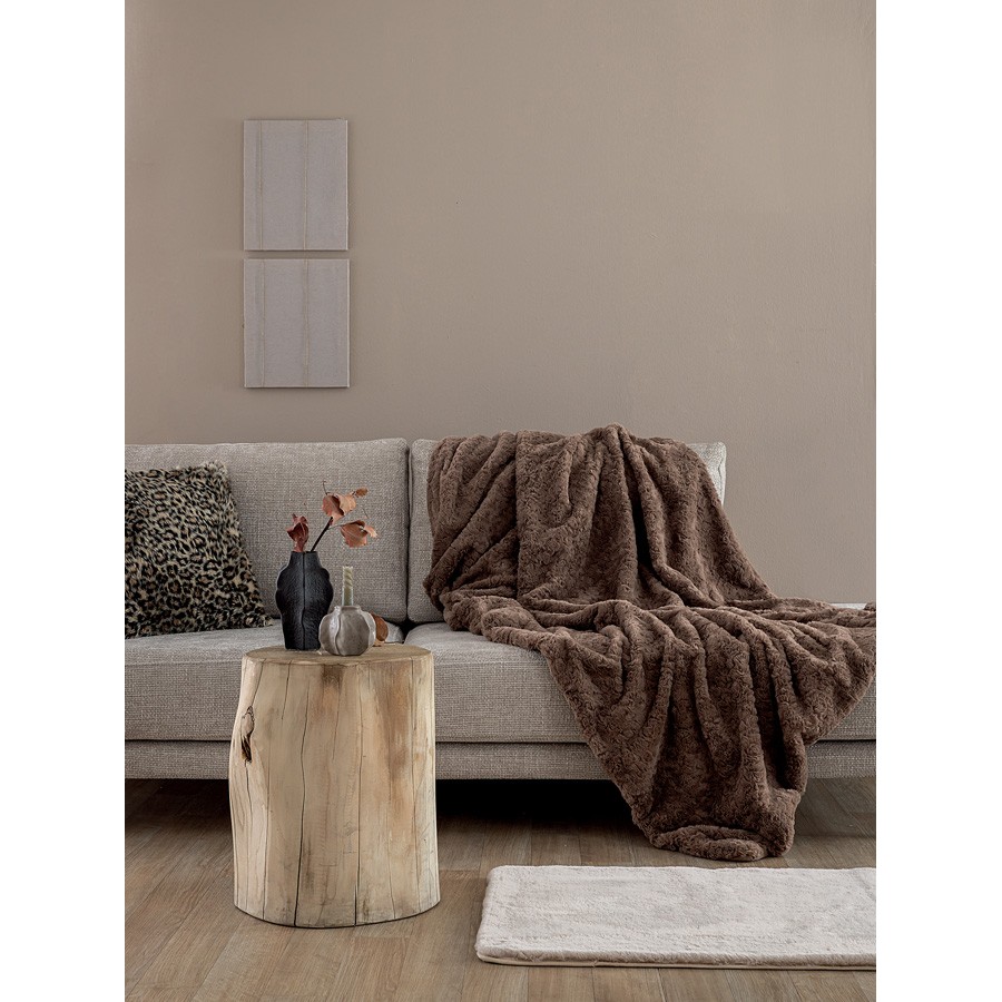 Γούνινη κουβέρτα-διακοσμητικό ριχτάρι για καναπέ.