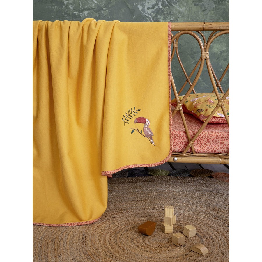 Η κουβέρτα Leobaby φέρνει τα χαριτωμένα ζωάκια της ζούγκλας στο βρεφικό δωμάτιο. Έχει υπέροχο κεντητό σχέδιο με το πουλάκι toucan, τυπωτό ρέλι περιμετρικά και ζωηρές αποχρώσεις του μουσταρδί και του πορτοκαλί. Δημιουργεί μια παιχνιδιάρικη αίσθηση στο βρεφικό δωμάτιο και χαρίζει στο μωράκι σας όμορφες στιγμές χαράς, καθώς θα ανακαλύπτει τα γλυκά ζωάκια και θα μοιράζεται μαζί σας τον ενθουσιασμό του.